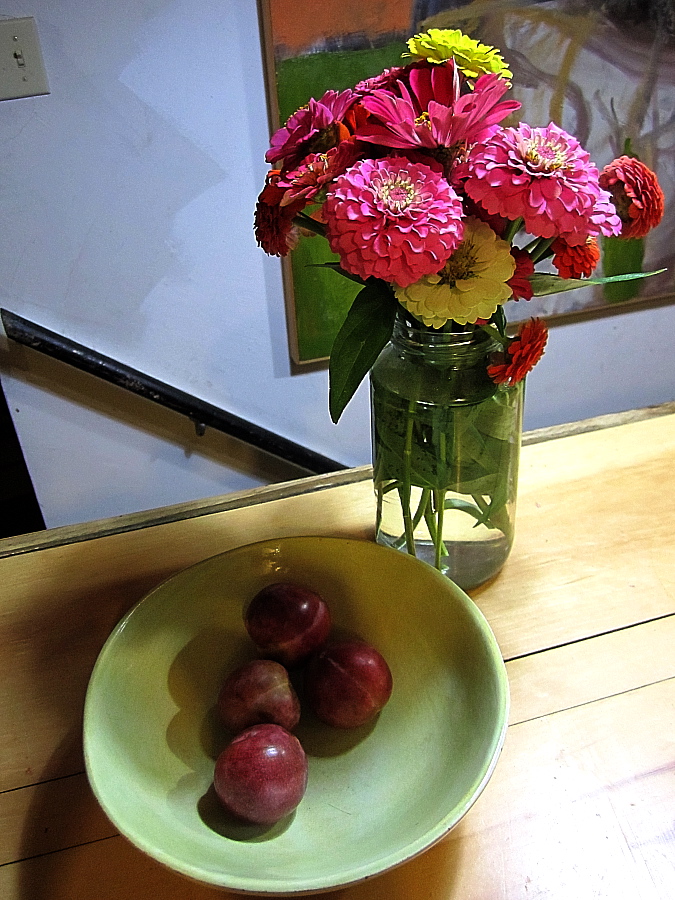 Last night I had some friends over to debrief a collaborative project from a few weeks ago. I was delighted to receive some lovely flowers and plums from one of my guests!