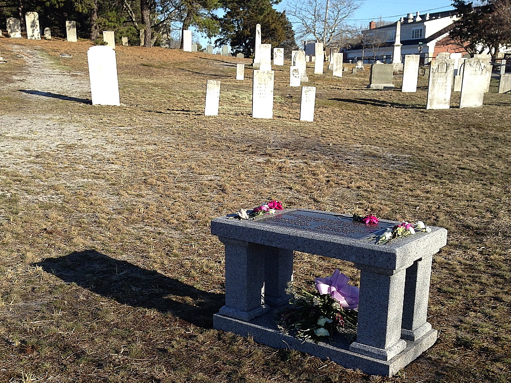 smallpox_memorial_15apr2015Over the past couple of years, I’ve written before about the old smallpox cemetery out by Clapp Pond in the Provinceland’s National Seashore. Last weekend, a group of Provincetown people dedicated a memorial to the fourteen souls anonymously committed outside of town.