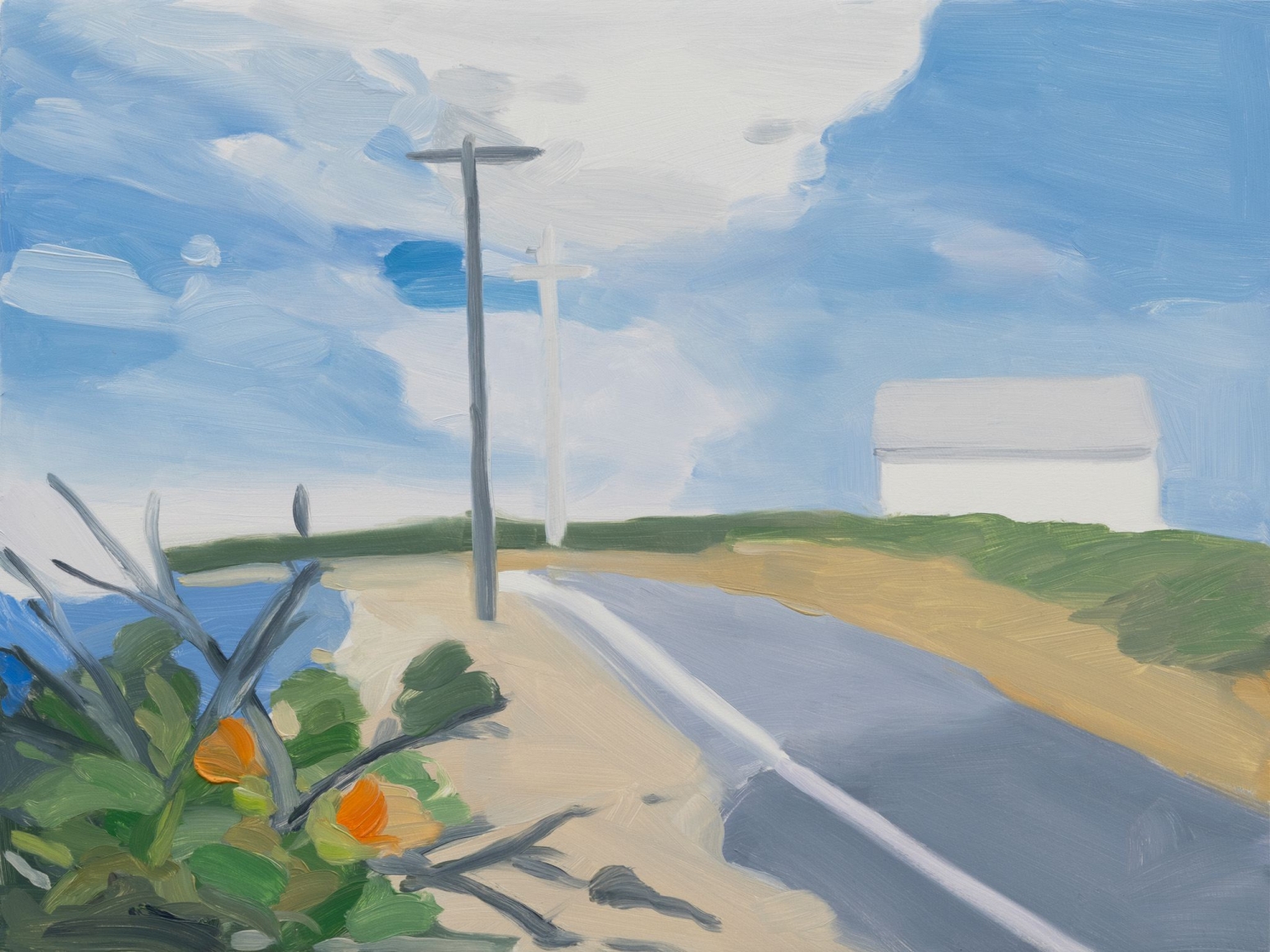 Maureen Gallace’s paintings delight me for their simultaneously spare choices and emotional intensity. The work is intimate in scale — often in the 9 x 12 inch range — and explores the landscape and social ecology of the American Northeast.
