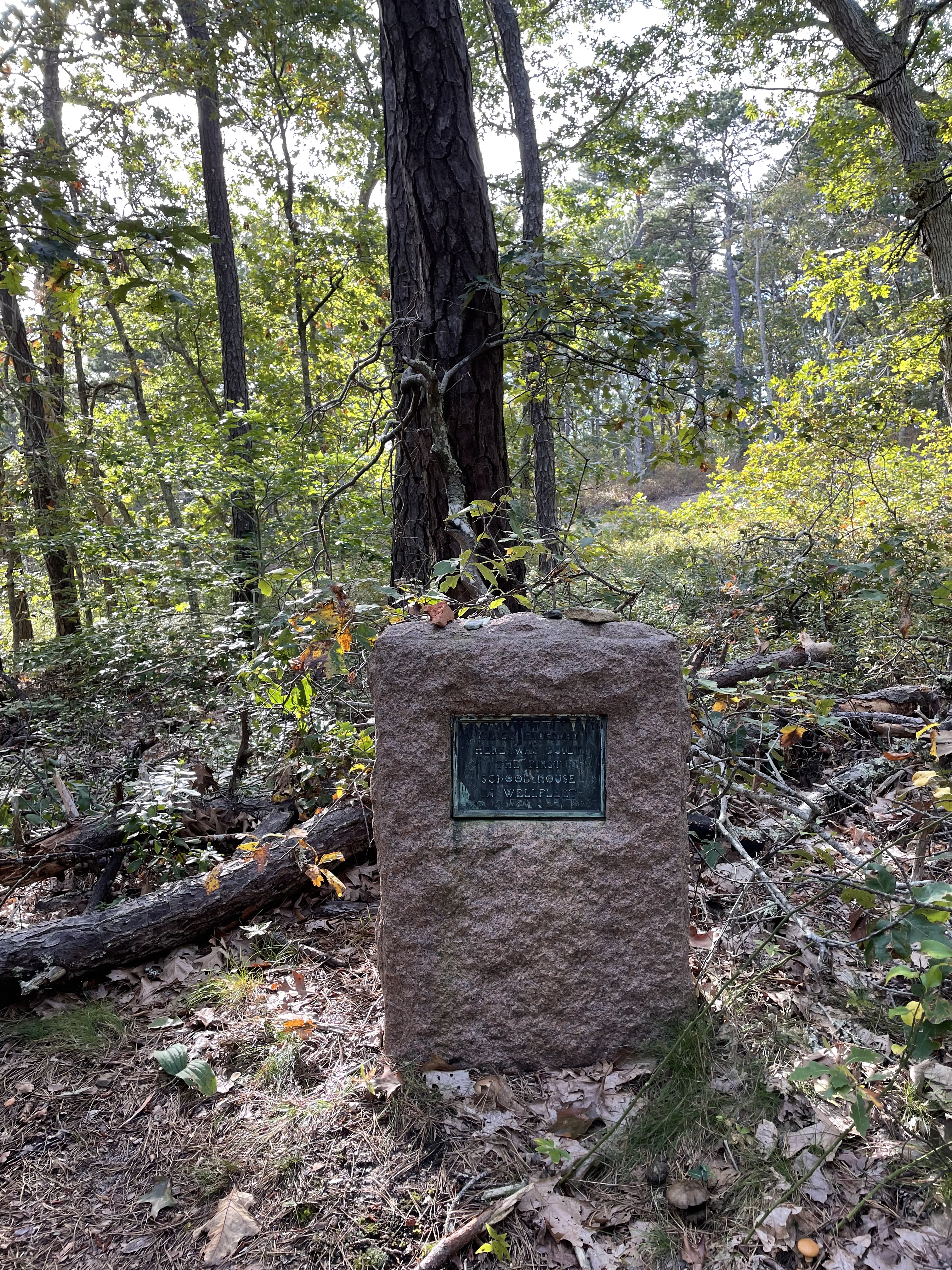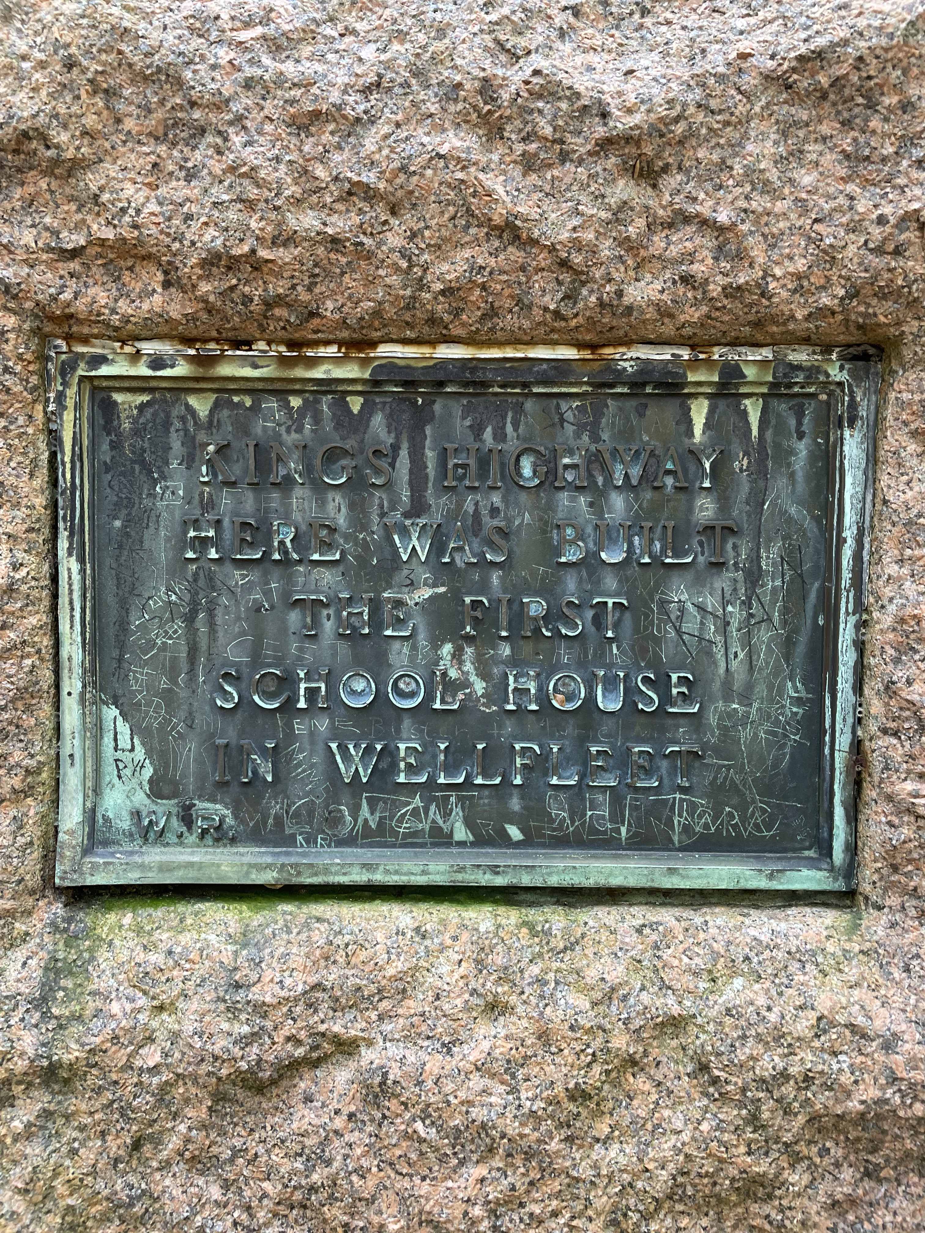 While some roads, like my road, are integrated into the modern streetscape. Others are not. Over the past week I’ve been walking old roads and, in basically the middle of nowhere, I’ve found two markers memorializing schools. The first commemorates the Island School on Bound Brook Island (1844) and the second commemorates Wellfleet’s first school on the Old King’s Highway (1798). These markers tell us that our ‘nowhere’ was once someone’s ‘somewhere.’