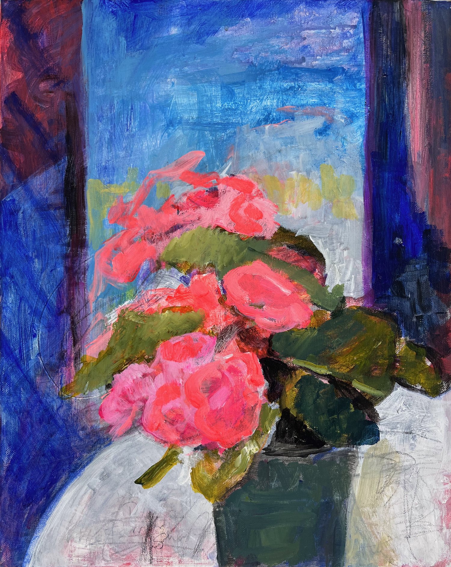 Liz Carney, Begonia Believed, 16 x 20 inches, acrylic on canvas.